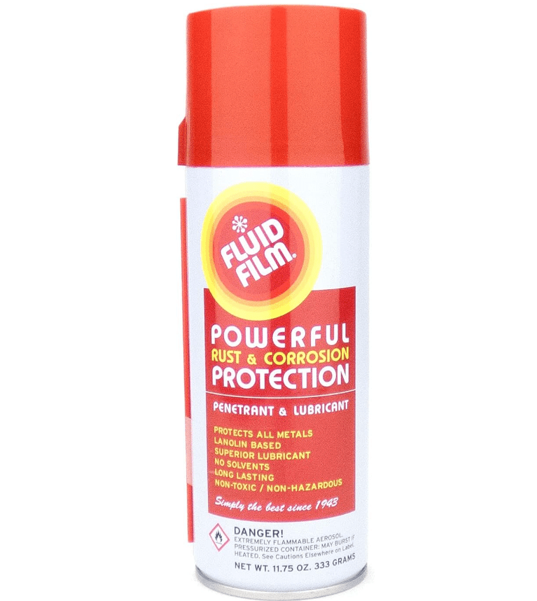 Use fluid film for awesome rust and corrosion prevention, protecting battery and electrical connections, and lubrication. Lanolin based (that’s wool fat). So very non-toxic and non-hazardous that you can use it in California. (It’s made there)